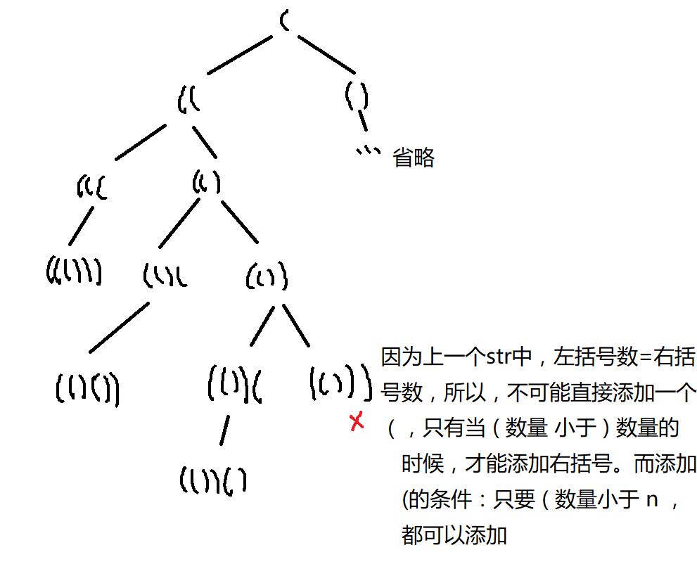 回到此题中来,下图可以说是非常直观了。这个选择过程就是一种树结构。最开始的时候肯定只能选 (,因此,分析是从 ( 开始的。![]()